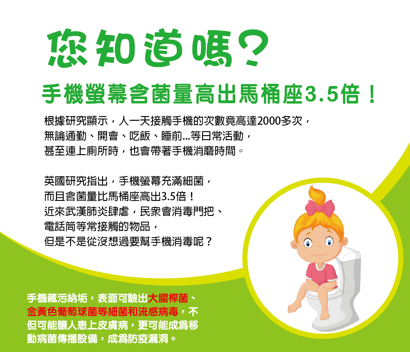 (8)現代人手機不離身,也忘了長時間使用導致油汙細菌的累積,噴灑後靜待5秒擦拭後既可去油也能抑菌